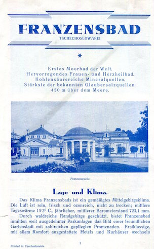 Czechoslovakia Franzensbad Brochure 1926 Front