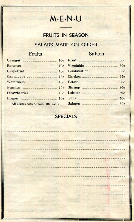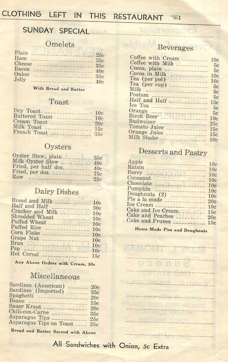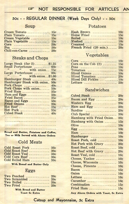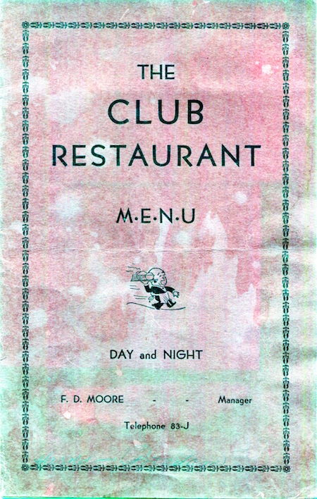 USA New York Gouverneur Menu Restaurant The Club 1933 Front