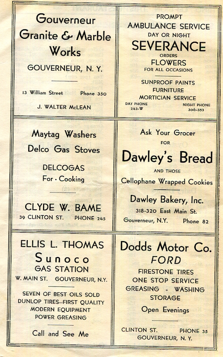 Gouverneur USA Menu