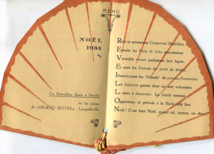 Belgium Congo Leopoldville Grand Hotel Menu Christmas 1934 Inside