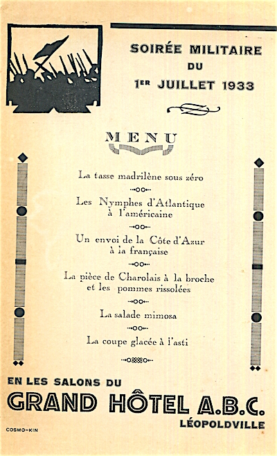 Belgium Congo Leopoldville Grand Hotel Menu Military Party 1933 Front