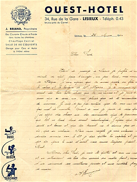 France Lisieux Hotel Ouest Stationery 1916