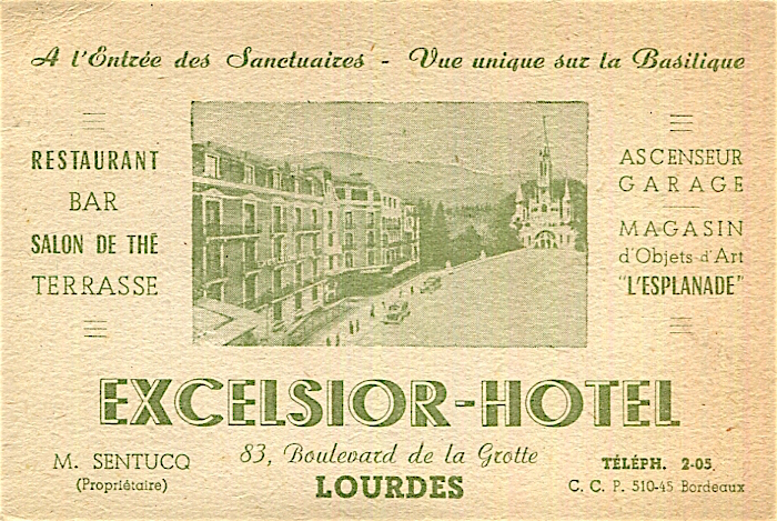 France Lourdes Hotel Excelsior Business Card 1920
