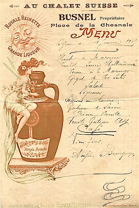 France Nantes Hotel Au Chalet Suisse Menu 1905