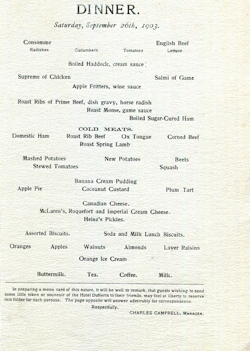 USA New Jersey New Brunswick Menu Hotel The Dufferin 1903 Front