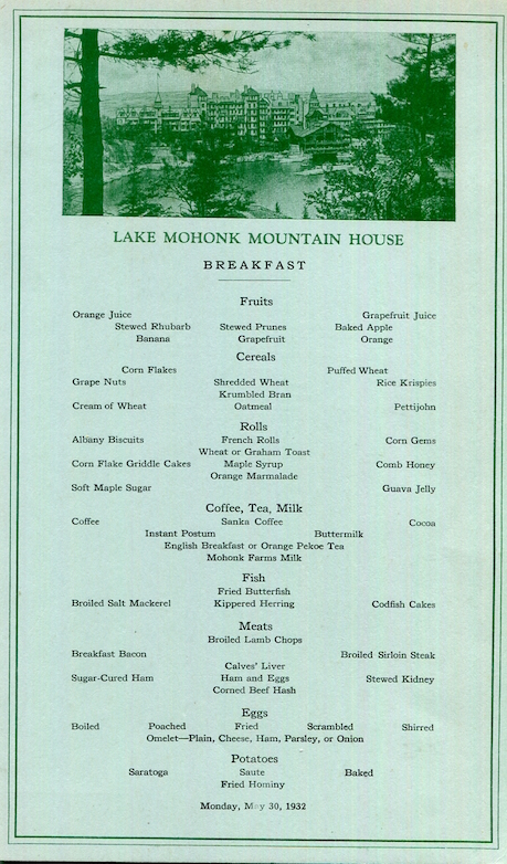 • USA New York New Paltz Menu Hotel Mohonk Mountain Lodge 1908 2