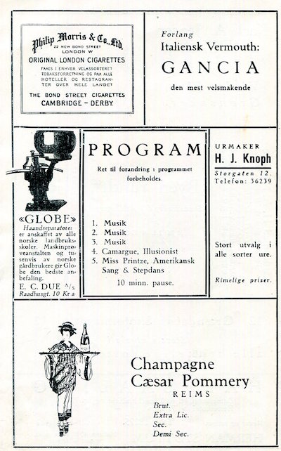 Norway Oslo Entertainment Dovrehallen Program 1924 Inside 3