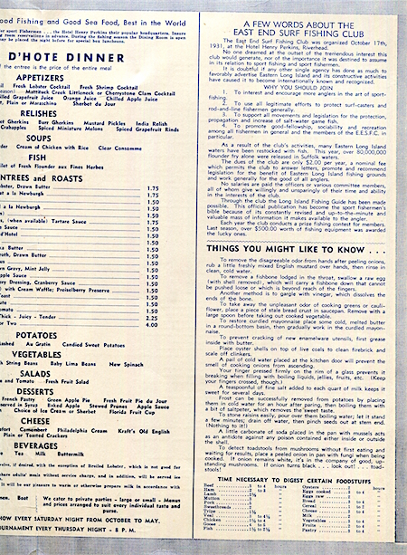 USA New York Riverhead Menu Hotel Henry Perkins 1932 Inside 2
