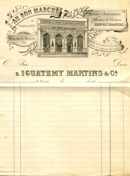 Brazil Sao Paulo Commerce Receipt Au Bon Marche 1880