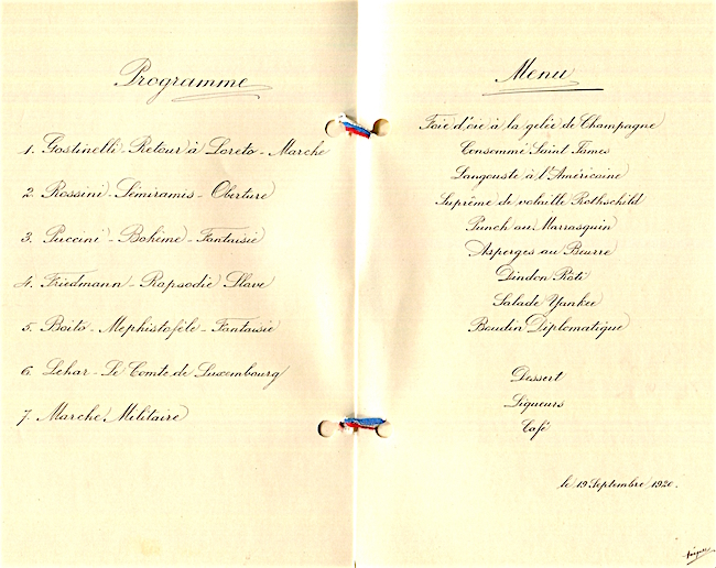 Chile Satiago Menu Diplomatic Dinner USA 1920 Inside