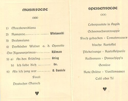 Chile Satiago Menu Restaurant Deutscher Verein 1921 Front