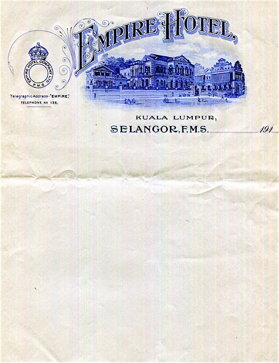 Straits Settlements Malacca Kuala Lumpur Empire Hotel Stationery 1911