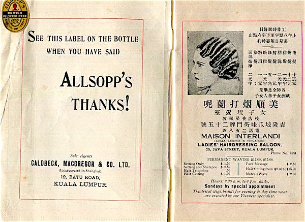 Straits Settlements Malacca Kuala Lumpur Lee Wong Kee Garden Cafe Bar Menu 1930 Inside 10