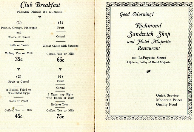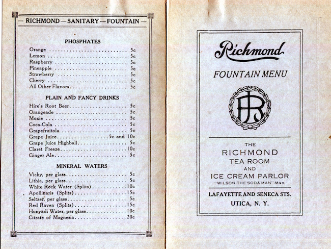 USA New York Utica Menu Sandwich Shop Richmond 1928 Front