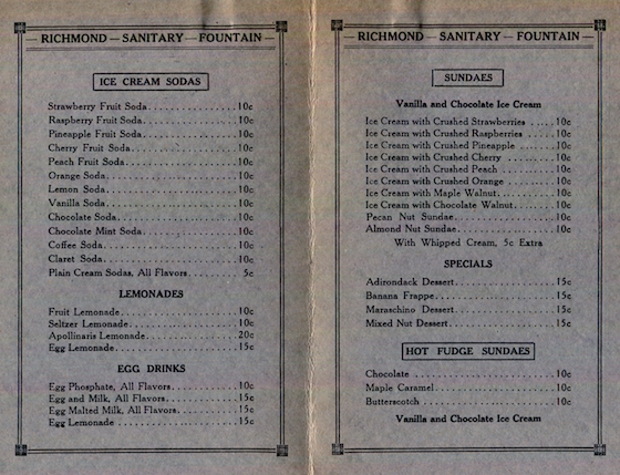 USA New York Utica Menu Sandwich Shop Richmond 1928 Inside