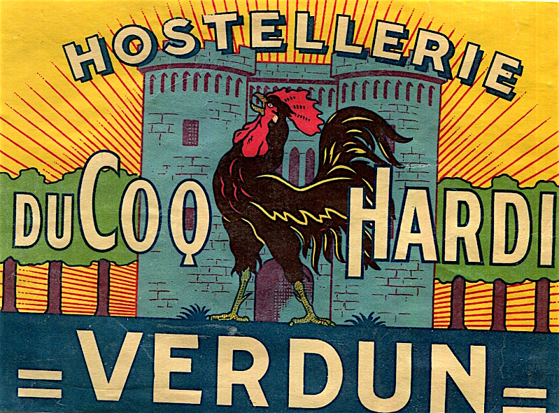 France Verdun Hotel Hostellerie Du Coq Hardi Luggage Label 1933