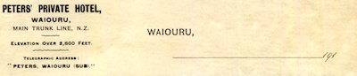 New Zealand Waiouru Hotel Peters Private Billhead 1910
