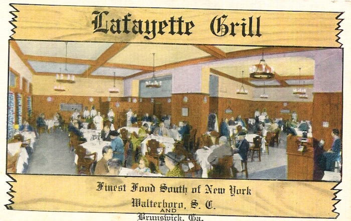 USA South Carolina Walterboro Postcard Restaurant Lafayette Grill 1926