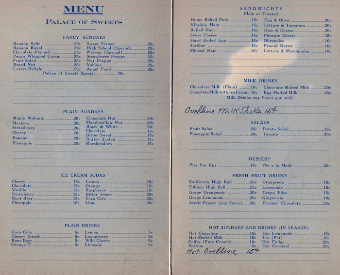 USA Pennsylvania Warren Menu Palace Of Sweets 1934 Inside
