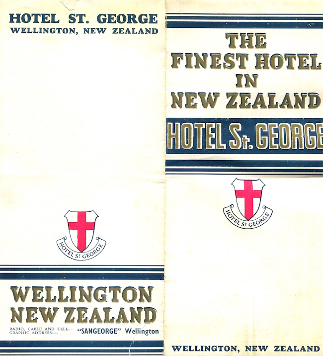 New Zealand Wellington Hotel St George Brochure 1933 Front