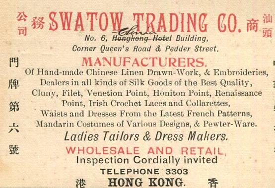 Hong Kong Commerce Swatow Trading Co Business Card 1920 Front