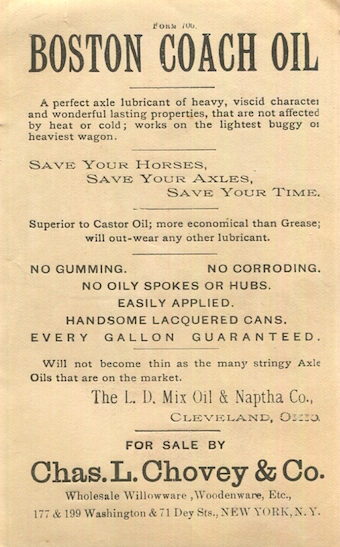 USA New York NYC Advertising Card Commerce Chas L Chovey Co Boston Coach Oil 1860 Front