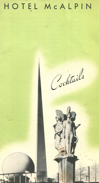 USA New York NYC Cocktail Menu Hotel McAlpin Worlds Fair 1939 Front