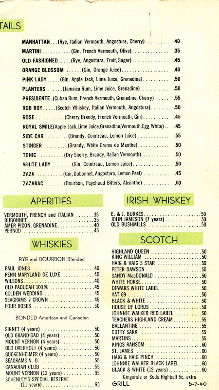 USA New York NYC Cocktail Menu Hotel McAlpin Worlds Fair 1939 Inside 1