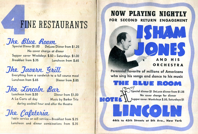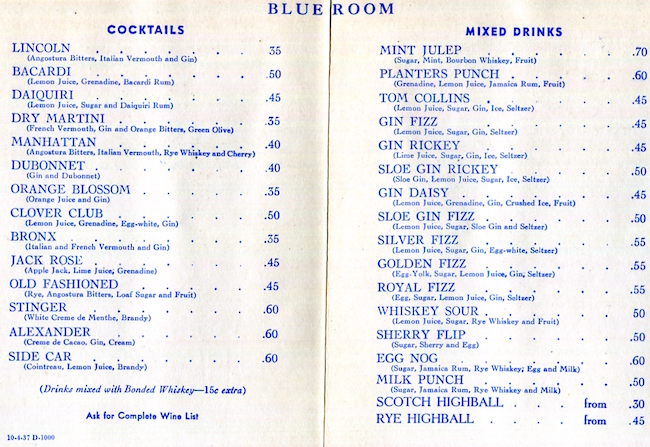 USA New York NYC Coctail Menu Hotel Lincoln 1935 Inside