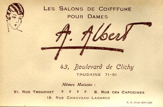 France Paris Commerce Business Card A. Albert Hairdresser 1928
