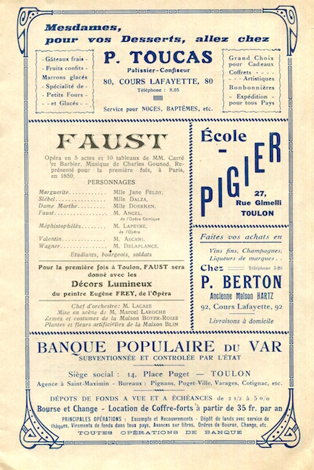 France Toulon Entertanment Grand Theater Program 1929 Front