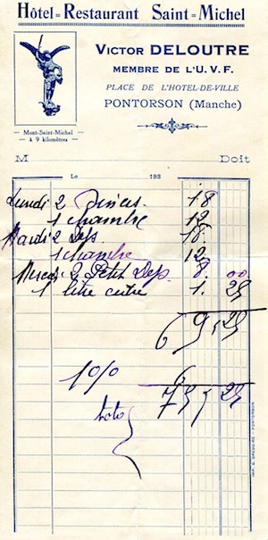 France Mont-St-Michel Hotel Receipt Hotel Saint-Michel 1937