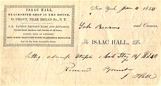 USA New York NYC Invoice Commerce Blacksmith 1844