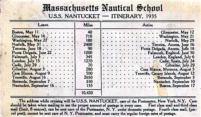 USA Itinerary US Navy Massachusetts Nautical School USS Nantucket 1935