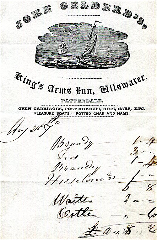 England Patterdale Kings Arms Inn Receipt Coach Hotel 1838