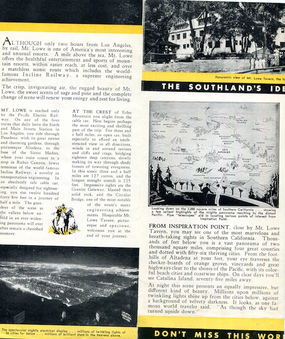 USA California Mt Lowe Pacific Electric Brochure 1914 Inside