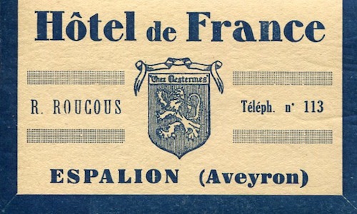 France Espalion Luggage Label Hotel de France 1930