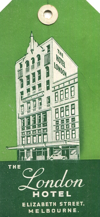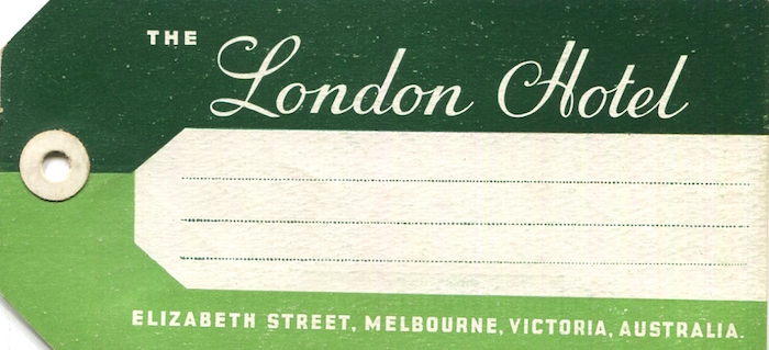 Australia Melbourne Luggage Tag Hotel London Hotel 1929 Front