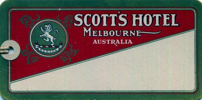 Australia Melbourne Luggage Tag Hotel Scotts 1929