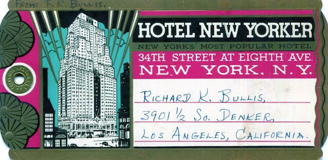 USA New York NYC Luggage Tag Hotel New Yorker 1934