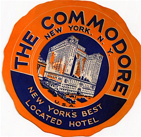 USA New York NYC Luggage Tag Hotel The Commodore 1938