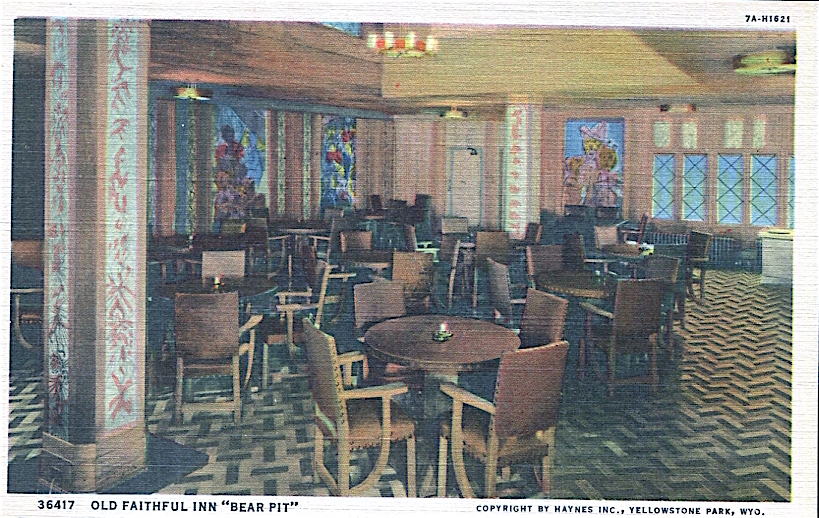 USA Postcrard Yellowstone Faithful Inn Bear Pit Cocktail Lounge 1937