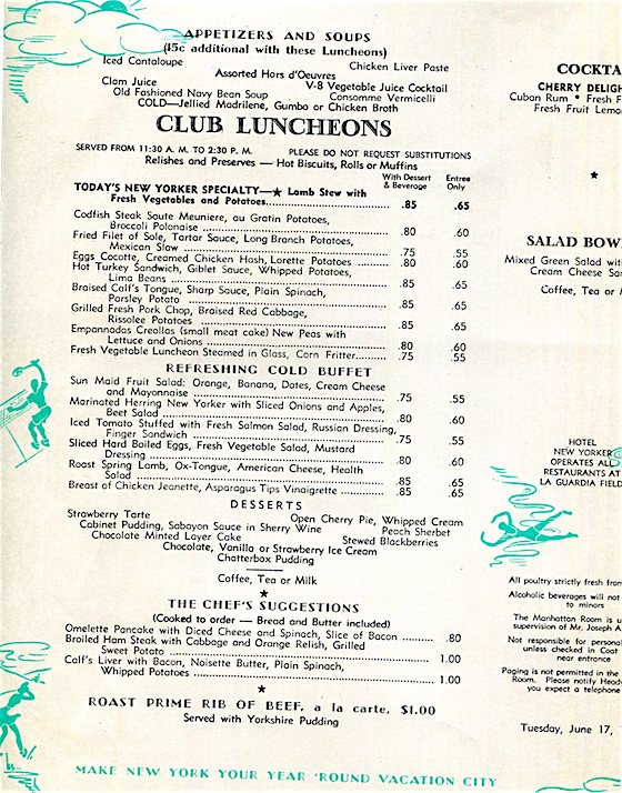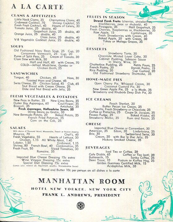 USA New York NYC Room Menu Hotel New Yorker Manhattan 1941 Inside 2
