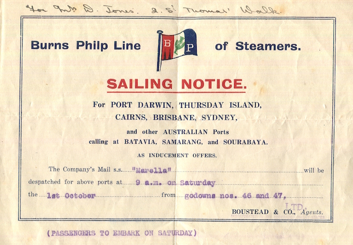 Australia Sailing Notice Travel Agency Burns Philip Co 1920