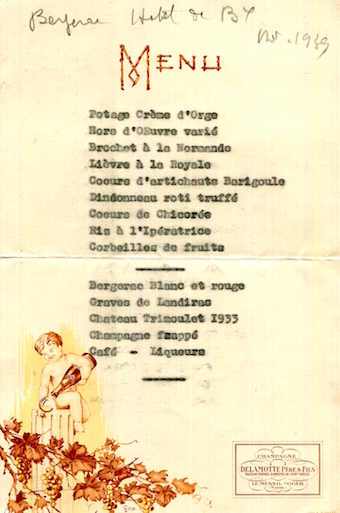 France Special Occasion Menu 1939