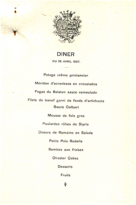 France Special Occasion Menu Seating Plan Vicomte De Fontenay 1907