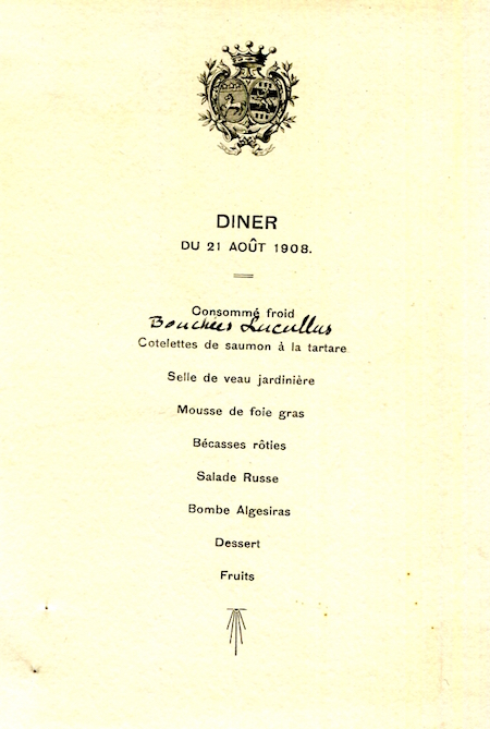 France Special Occasion Menu Vicomte De Fontenay 1908