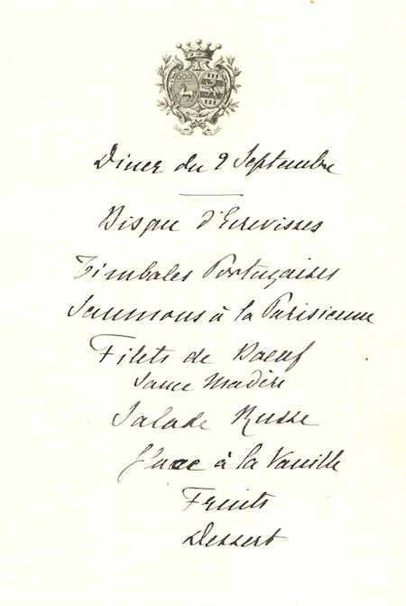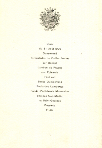 France Special Occasion Menu Vicomte De Fontenay 1909
