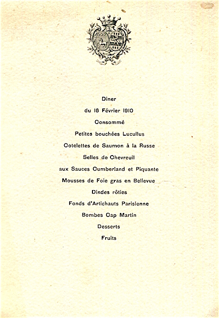 France Special Occasion Menu Vicomte De Fontenay 1910