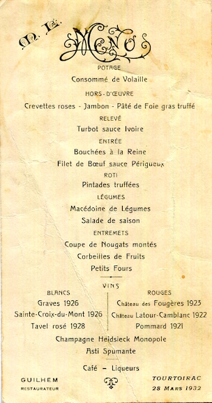 France Tourtoirac Special Occasion Menu 1932